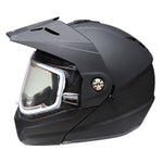 Hit the trails in comfort and safety in the stylish new MD-74 modular ADV helmet from GMAX. MD-74 checks all the boxes for adventure and snow riders who prefer the convenience of flip-up modular helmets. Features like drop down inner shield, removable neck curtain and breath box, 3 closeable vents, and available dual pane and electric shields make for an outstanding package for snowy adventures. Ride with or without the peak visor, neck curtain and breath box, and switch to a single pane shield, and your MD-74 is ready for warm weather riding. MD-74 combines maximum comfort, versatility, and modern features in one value-packed package.